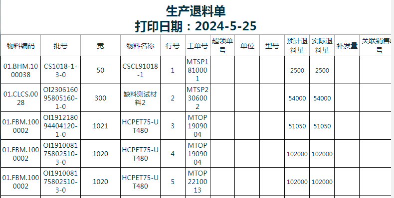 扫码退料的,在车间退料申请明细表里面 勾选打印。
