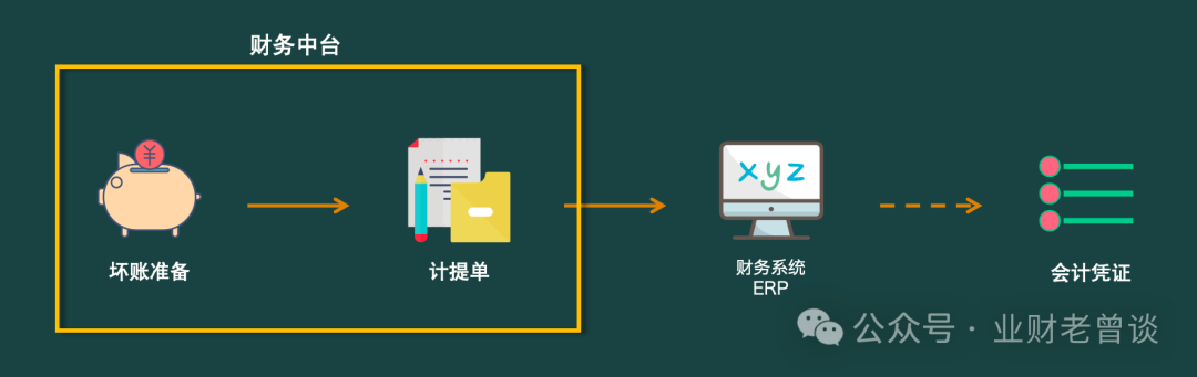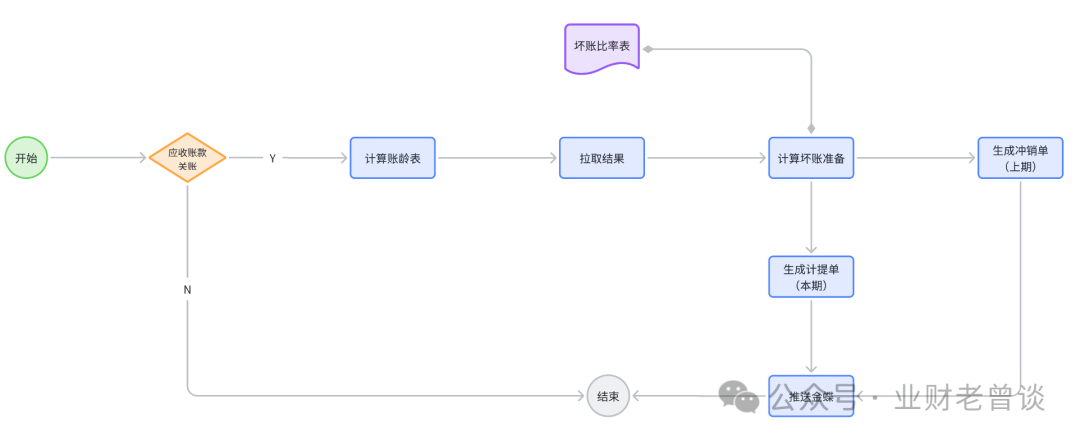 从上述分析可以得知,坏账损失确认、坏账损失核销、坏账准备转回依赖前端业务或客户的相应证据链证明应收账款无法收回(比如客户是恒大、OFO之类),且这些证据经流程审批后才可入账,需会计的职业判断,无法自动化入账;相反,工作量最大、规则较稳定的坏账准备计提可以实现自动化入账,实现业务到财务的一体化流转。坏账准备的计提方法有四种:即“余额百分比法”、“账龄法”、“销货百分比法”和“个别认定法”,实务中以账龄法和个别认定法居多。解决方案:整冲整提法,即先将上期的冲销再计提本月的坏账准备。将“坏账准备”当作一个池子,每月先将上月的水(坏账准备)排干净,再放入本月的水(坏账准备),这样实现循环流转,保证每月都是最新、最准确的坏账准备金额。至于坏账损失的确认与核销、坏账准备的转回即时发生随时入账。这样把复杂的增量计提化繁为简,账务更清晰、核算更简单高效。- 同一笔应收账款在不同期间有不同的账龄,继而有不同的坏账计提比例。