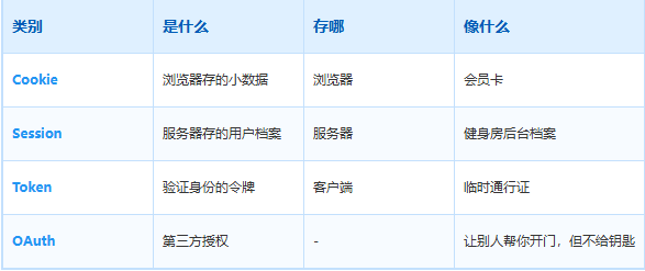 导读 你有没有想过一个问题:为什么关掉浏览器再打开,之前登录的网站还是登录状态?浏览器重启了,凭什么还记得你是谁 今天,我用会员卡的故事,来讲讲Cookie和Session到底是怎么回事。 浏览器是怎么"记住"你的?想象一下你去一家健身房。 第一次去,前台会让你填表,然后给你一张会员卡。以后每次去,你只需要出示会员卡,前台就知道你是谁了。 浏览器也是一样的道理。 你登录一个网站后,网站会给你发一张"会员卡"——这就是Cookie。下次再来,直接出示"会员卡",网站就知道你是谁了。