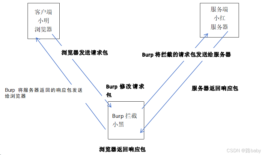 当加入Burp Suite时,客户端与服务器的交互过程如下: