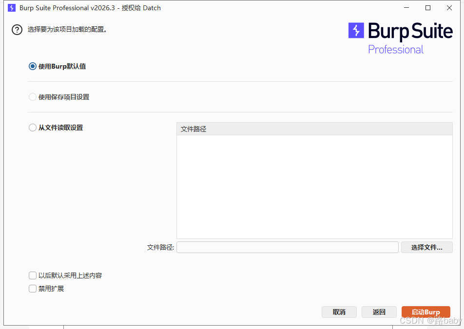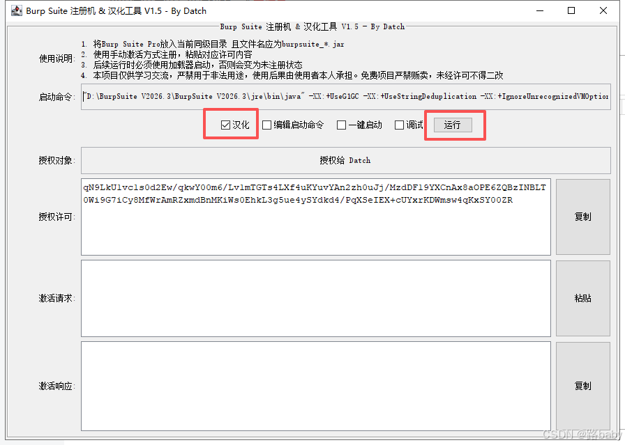 勾选后直接点运行即可唤醒burp(首次激活使用必须按照步骤)