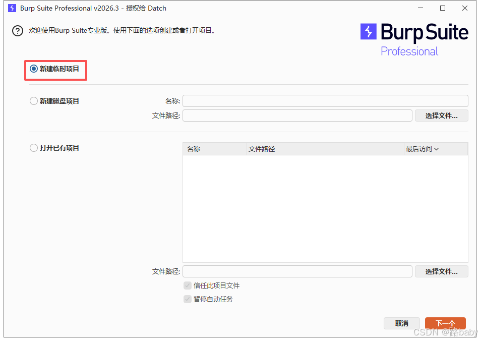 这里我们选择新建临时项目(不会产生一定量的缓存)