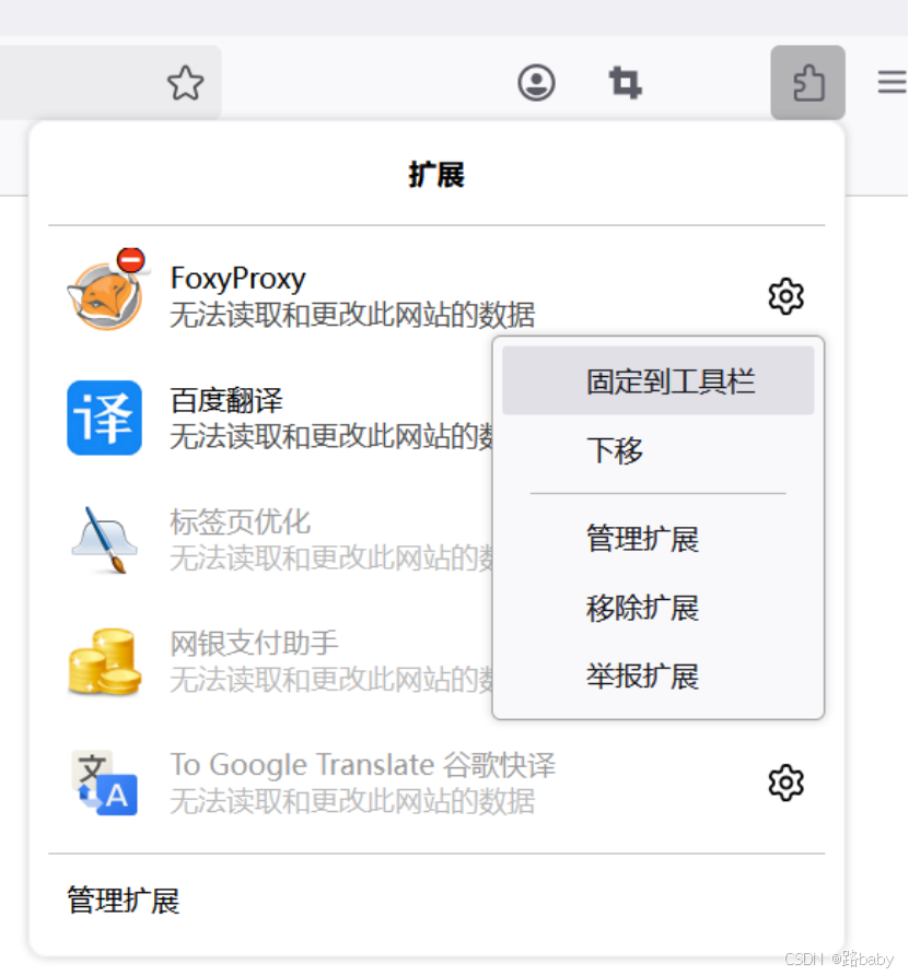 然后我们点击那个拼图的按键  将插件固定在工具栏上