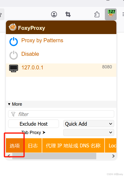 因为 Burp suite 默认监听本地8080端口,所以我们需要把浏览器的流量转发到8080端口,