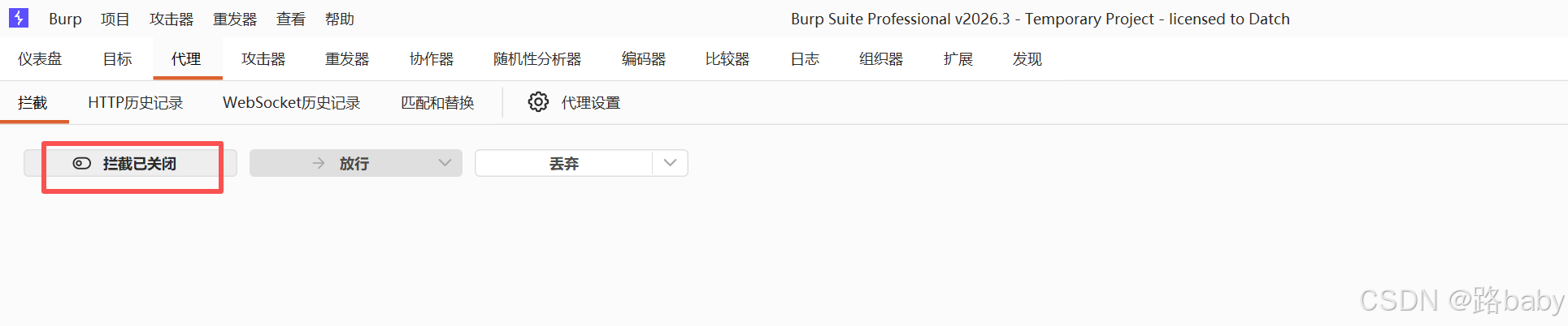 我们需要去打开BP 把拦截关闭 当然我们这里默认的就是关闭的状态