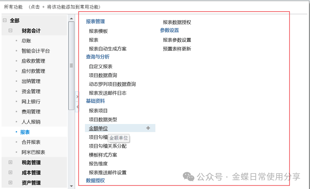 【功能菜单】:产品路径:【财务会计】->【报表】->【数据授权】->【报表数据授权】