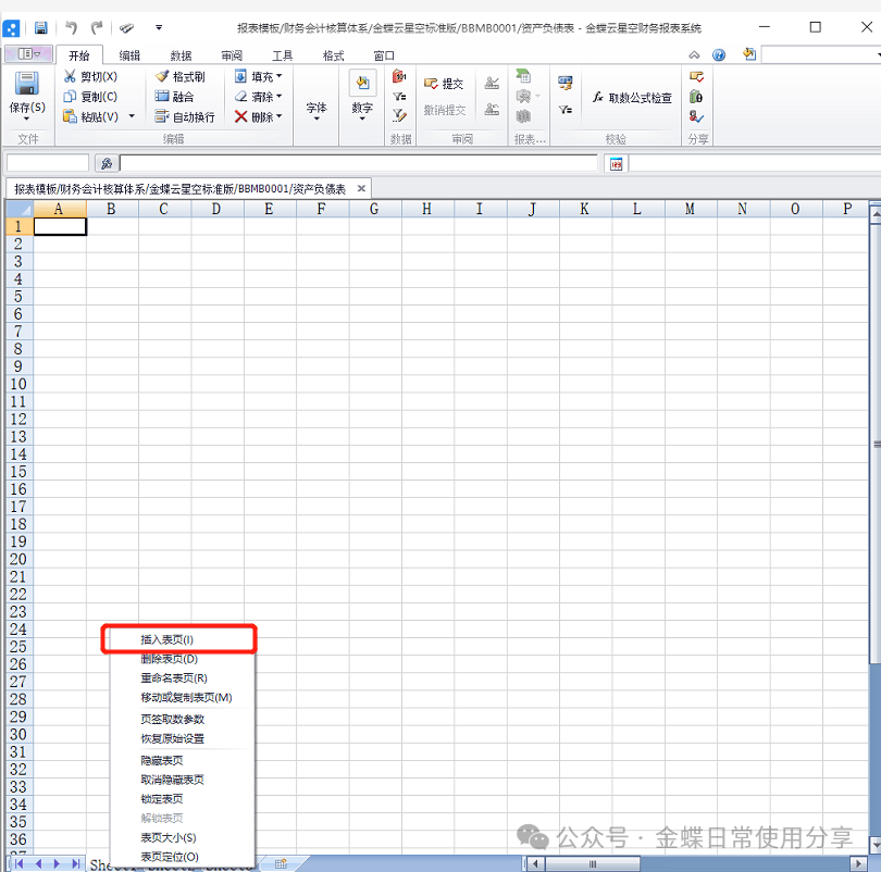(1)插入系统预置表页:鼠标右键点击表页标签(表页标签如:sheet1),选择【插入表页】,在弹出的“插入表页”对话框的【报表样式】页签中,选择需要插入的报表样式(如资产负债表),点击【确定】按钮,系统会显示“插入表页XX报表成功”;