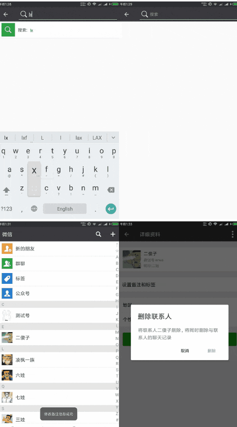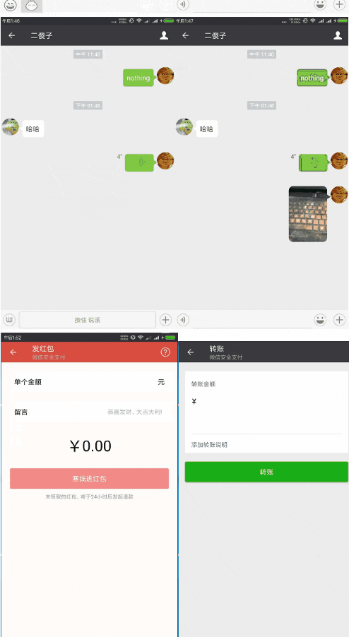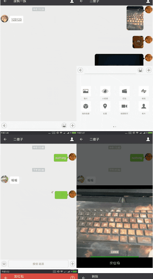 L-WeChat是一款1:1仿微信的即时通讯IM系统,几乎完美还原了微信的核心界面和主要功能,包括:主界面导航、消息列表、通讯录、群聊、添加朋友、扫码、群组管理、语音、视频、表情包、朋友圈、位置发送,红包消息等。
