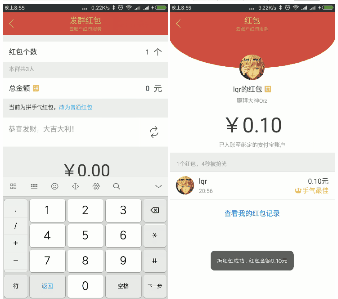 接收并显示最近的群聊消息