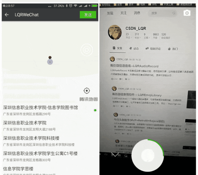 小视频:长按录视频(默认10秒)、上滑取消视频录制